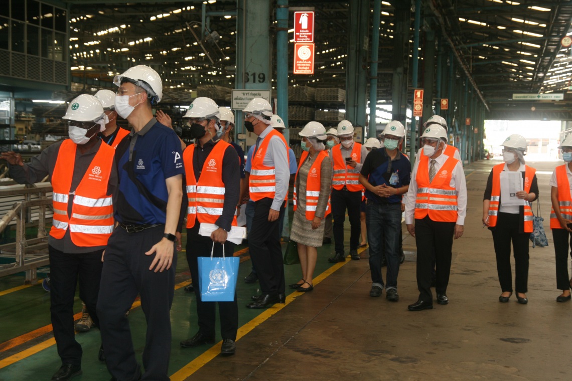 The high-level visit was hosted by the Thai Metal Aluminium Co., Ltd (TMA), one of six demonstrating facilities supported by the project. The factory is committed to reduce energy consumption and the environmental impacts from their operation.