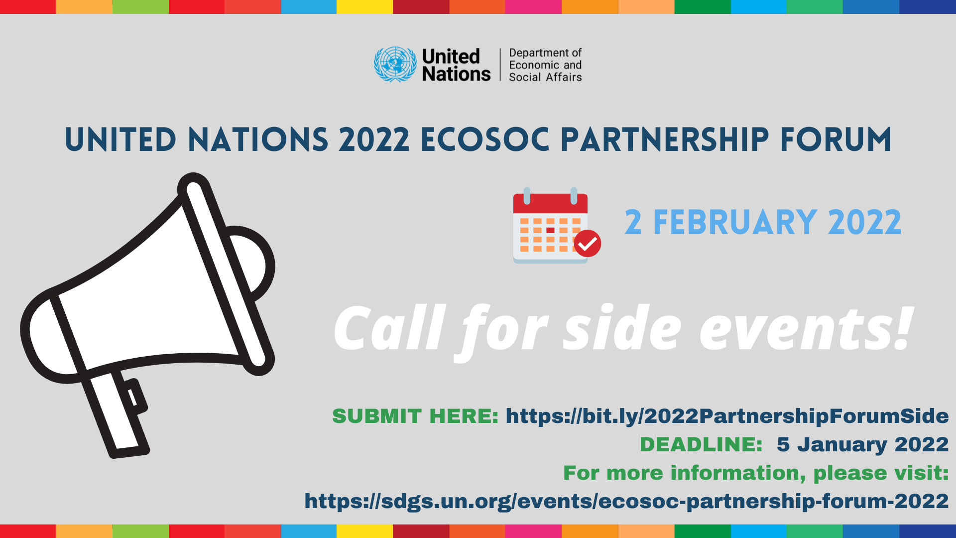 Side events should be clearly aligned with the main Theme of the 2022 ECOSOC Partnership Forum (see above).